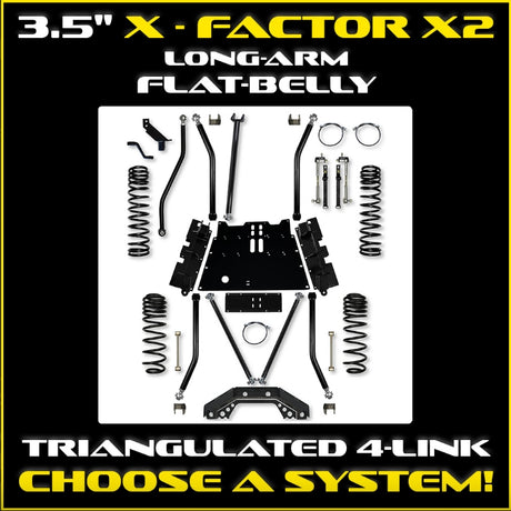 Jeep LJ 3.5" X-Factor X2 Flat Belly Long Arm System - 4 INCH STRETCH