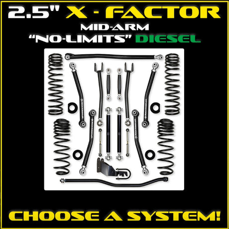 Jeep JLU (4DR) 2.5" X-Factor Diesel Mid-arm "No-Limits" System (RUBICON)