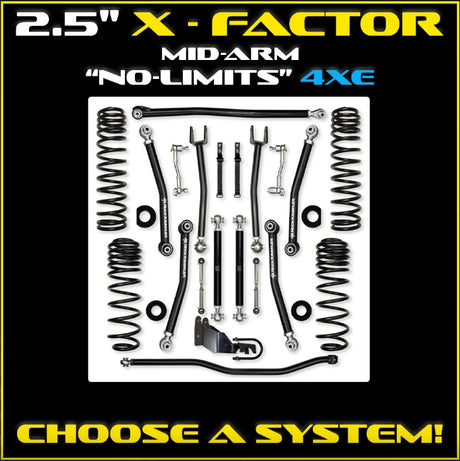 Jeep JLU (4DR) 2.5" X-Factor 4XE Mid-arm "No-Limits" System (RUBICON)