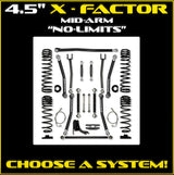 Jeep JT Gladiator 4.5" X-Factor "No Limits" Mid-Arm System (RUBICON) - NO SHOCKS is backordered and will ship as soon as it is back in stock.