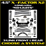 Jeep JT Gladiator 4.5" X-Factor X2 "No-Limits" Long-Arm System (RUBICON) - NO SHOCKS is backordered and will ship as soon as it is back in stock.