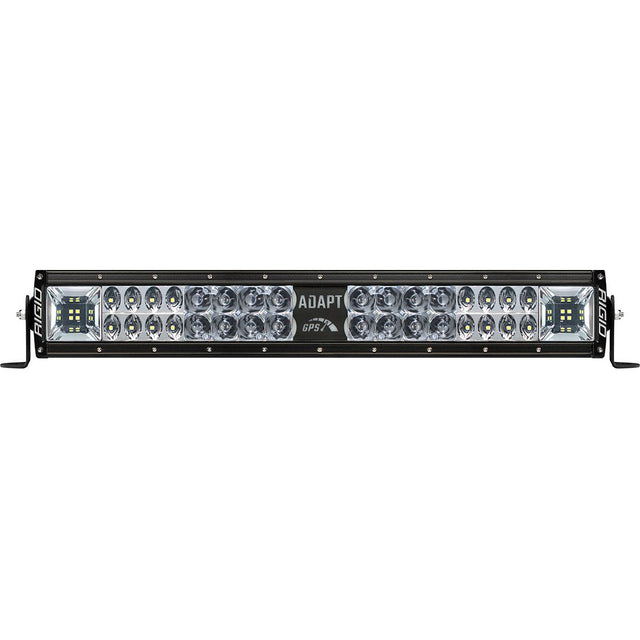 The RIGID Adapt E-Series LED Light Bar features the same style and construction as RIGID's legendary E-Series, from the high-strength aluminum heat sink to the unbreakable polycarbonate lens. On the inside, however, the Adapt E-Series contains cutting-edge technology. The Adapt E-Series takes off-road lighting performance to a whole new level with two layers of adaptive response to your vehicle and driving conditions. RIGID's Active Power Management system continuously monitors input voltage to determine the status of the vehicle's electrical system, while RIGID's proven Active View Technology uses an internal GPS module to determine the vehicle's speed, allowing the Adapt E-Series to properly distribute all available power among three unique optic zones. With RIGID's Adapt E-Series LED Light Bar it's easier then ever for you to Own the Night.